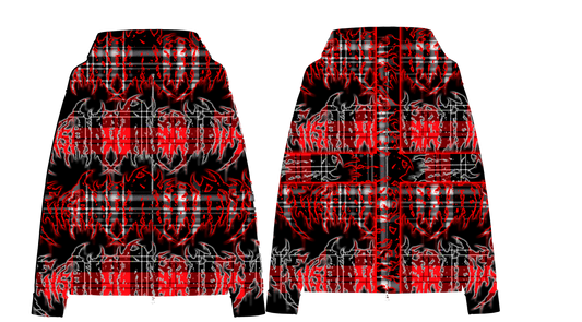 RED PLAID LOGO ZIP